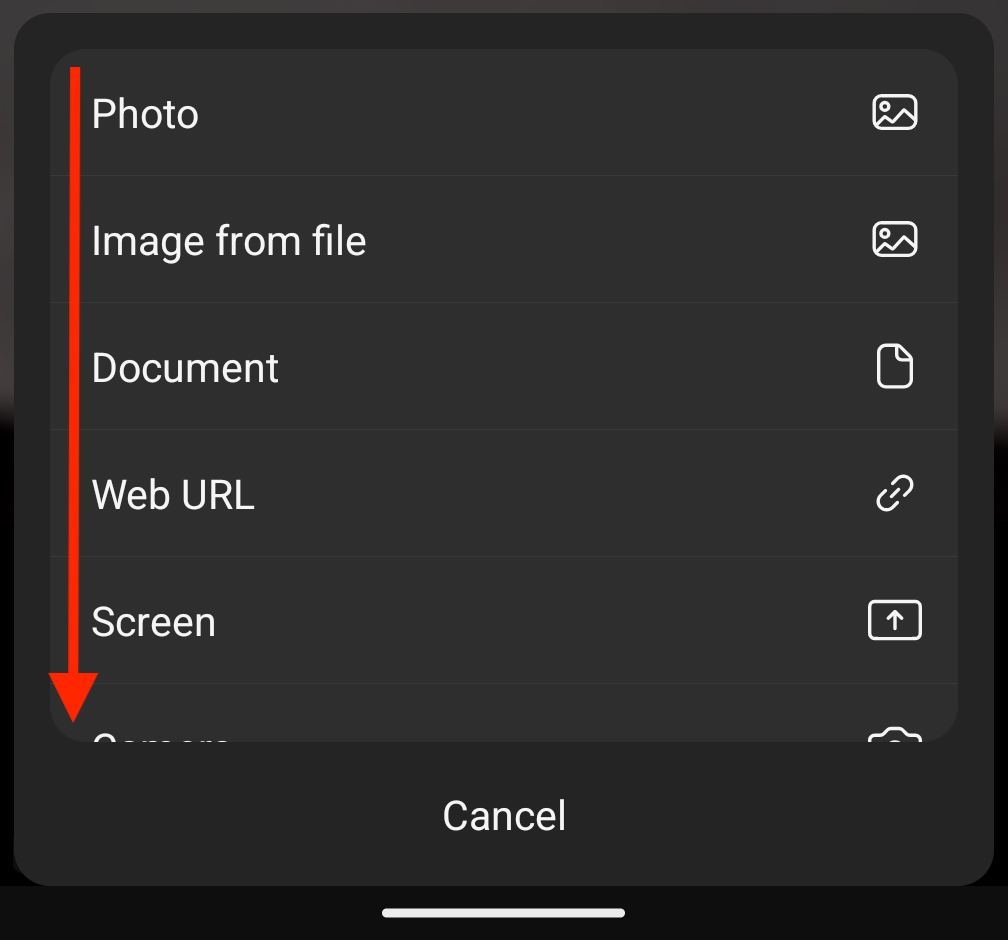 2. Tap to select the content type you would like to share. Depending on the size of your phone, you may need to scroll to view the whole list: