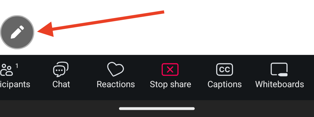 3b. If you selected Whiteboard, the screen will go blank and your video feeds will disappear. Tap on the pencil icon in the lower left hand corner to access annotation tools.