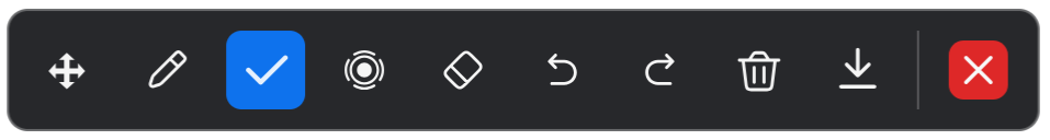 4. Tap on a tool to select it and begin using. (Tap on the pencil icon on the left at any time to stop using tools and to click on the screen normally.)