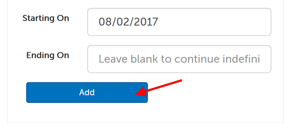 7. Click on the "Starting On" field to make the datepicker appear, and select the date the recurring appointment slot should start on. (Leave blank to start immediately.)