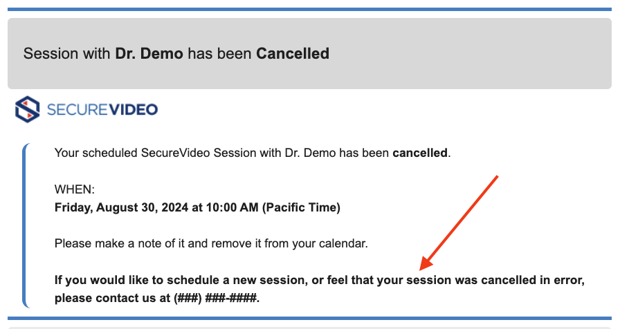 Here is how the cancellation email would look using the above example: