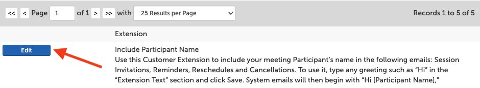 2. Available Custom Text options will be displayed along with a description of its function. Click the "Edit" button to add/edit text to an extension.