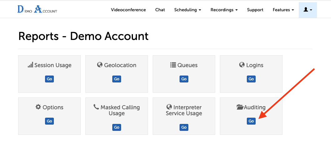 2. From the Reports home, select Auditing.